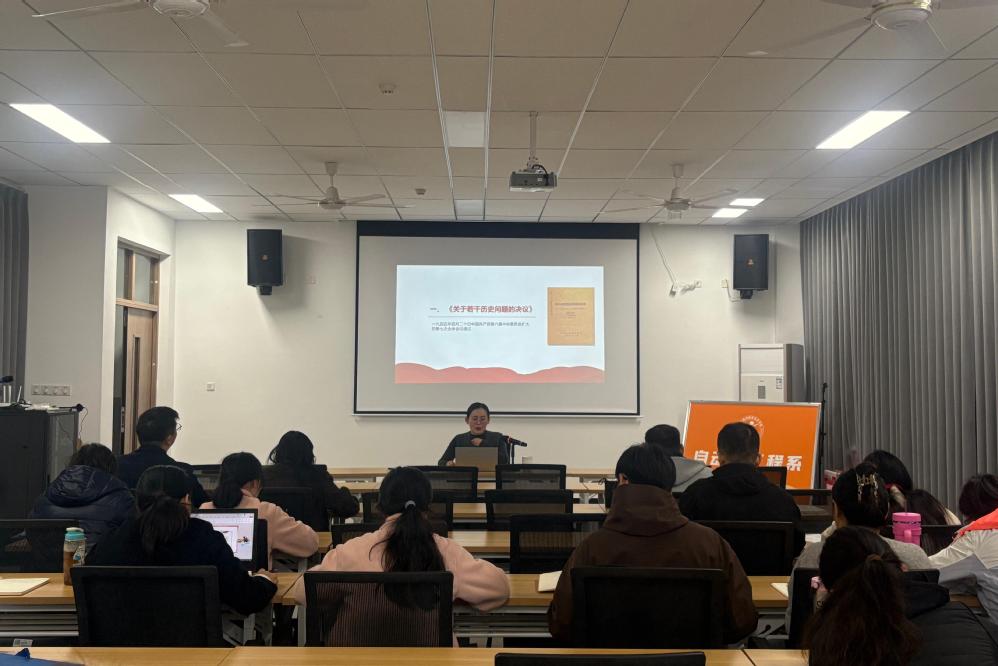 11月13日,自动化工程系党支部在敏行楼401组织开展“从百年党史解读三个历史决议”专题政治学习。本次学习特邀“淳语学史”宣讲团成员、中共高淳区委党校总务科科长、一级主任科员张悦同志担任主讲,支部全体党员参与学习。